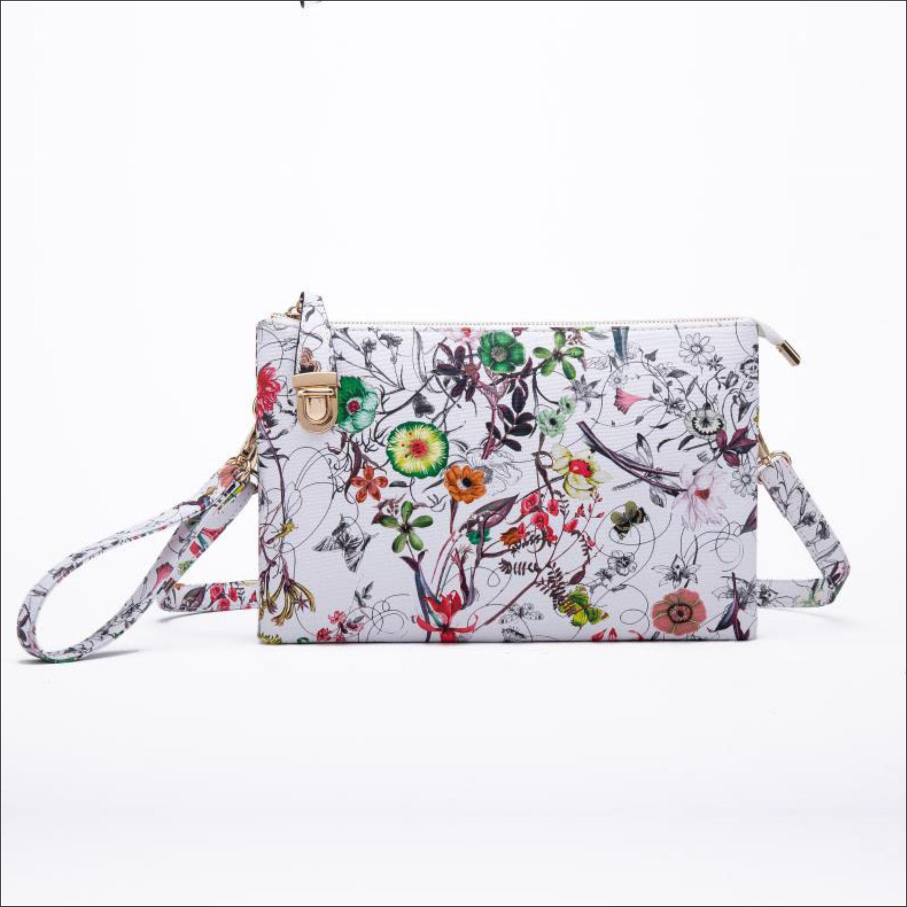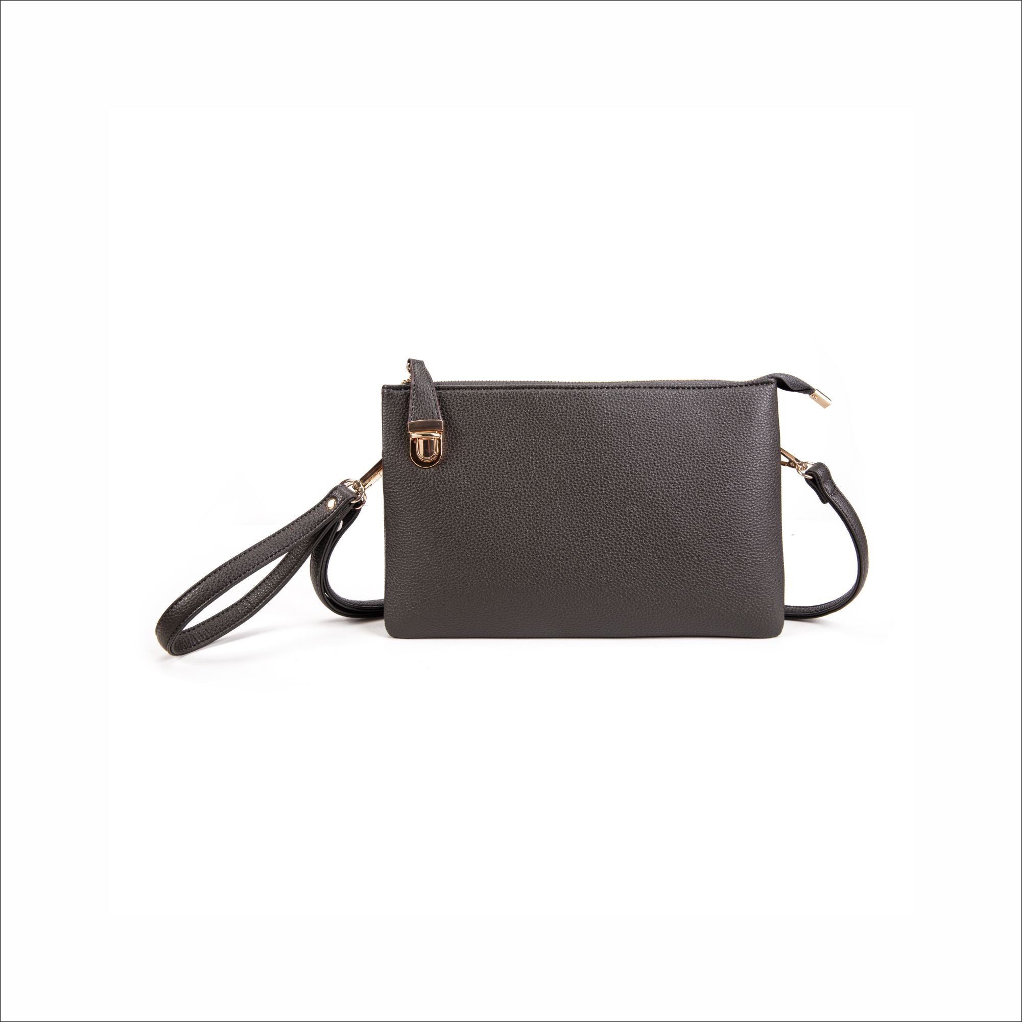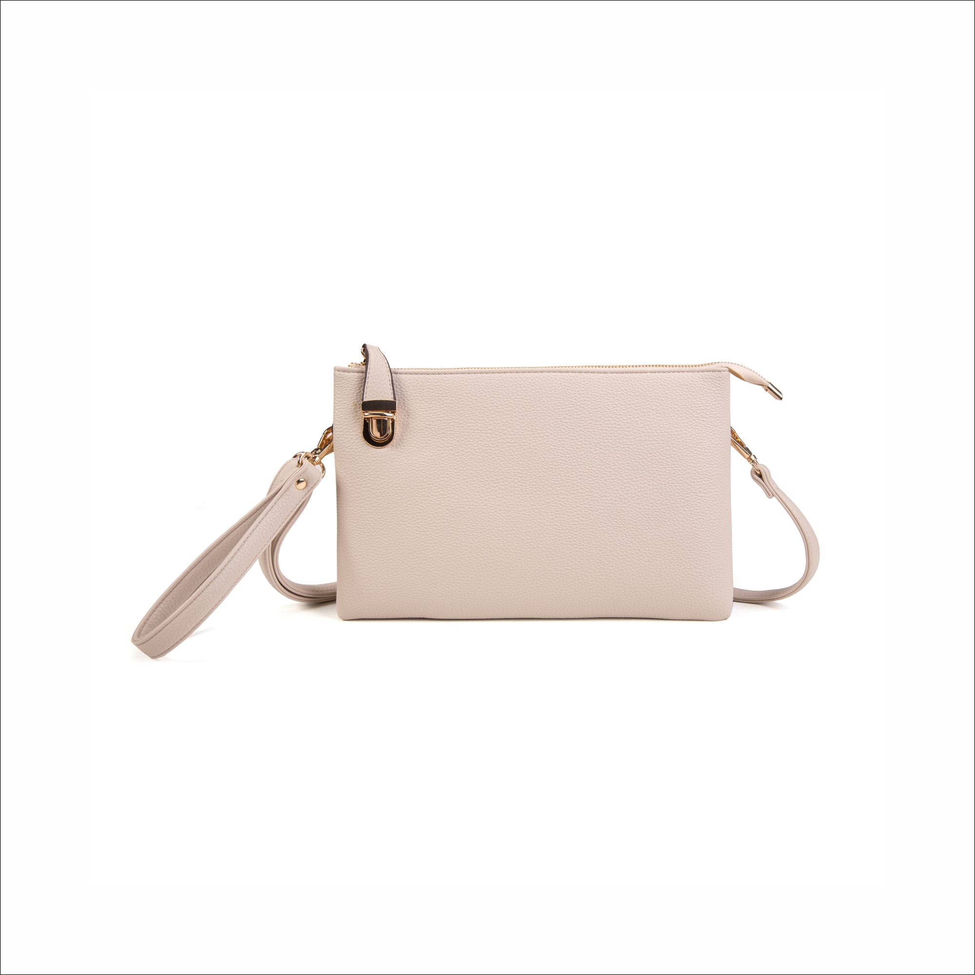 Detachable wristlet and crossbody strap for multiple carrying options.