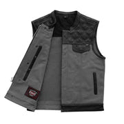 FIM664CNVQ | Hunt Club - Men's Motorcycle Leather & Canvas Vest - Grey
