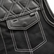 Hunt Club Motorcycle Leather Canvas Vest White Stitch