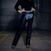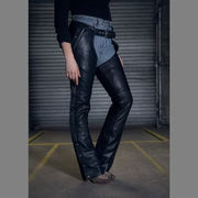 The Wind Walker chaps are a unisex fit in heavy duty Diamond Naked Cowhide. Removable Gator Skin liner helps keep you warm on the coldest of rides. Stretch panels and back lacing allow comfort while riding, along with pockets for everything you need to keep handy. And they're easy to roll up and put in your saddlebag to keep handy for when the temps drop!