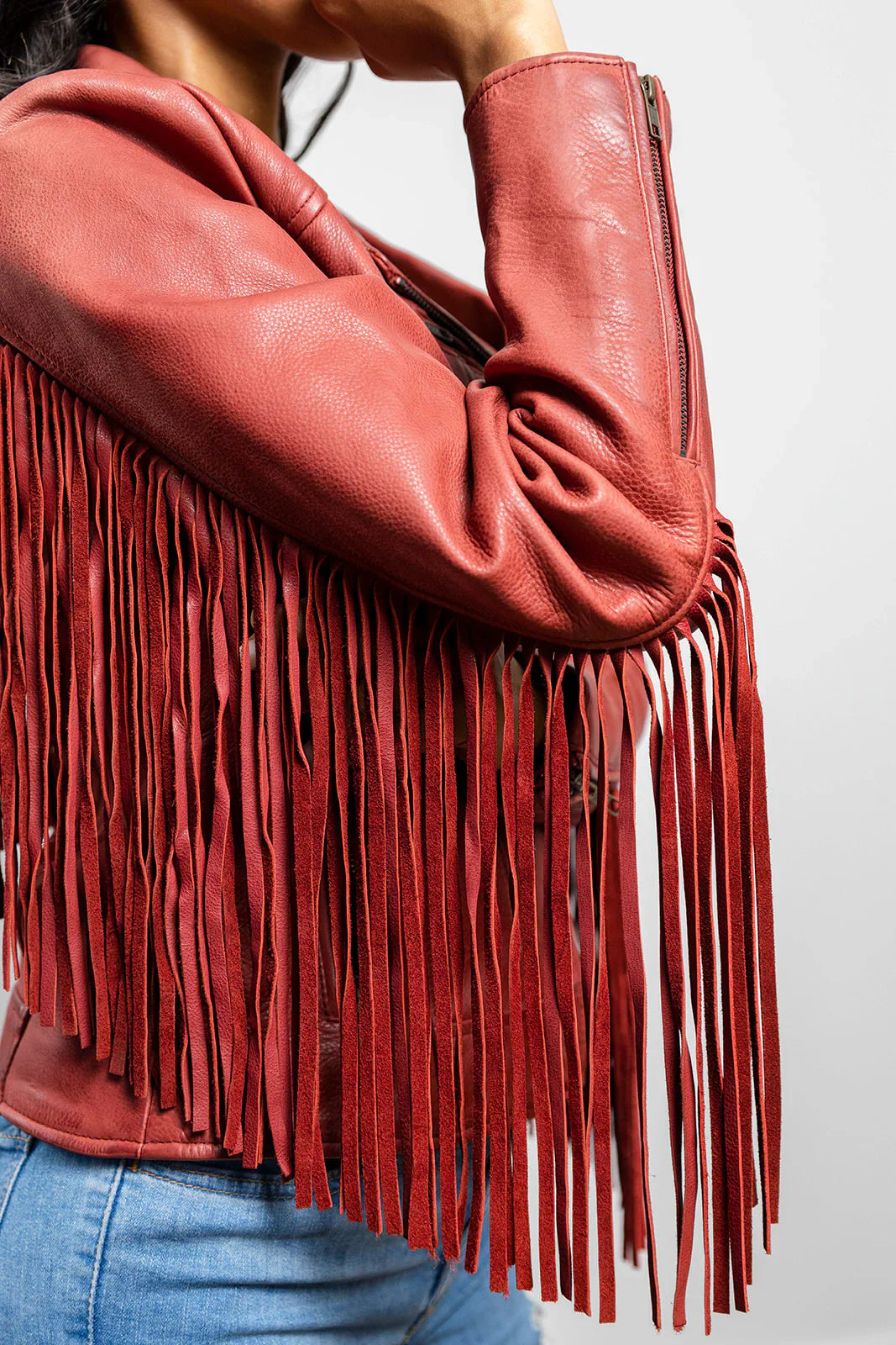 - Zip-front closure with sleek metallic hardware