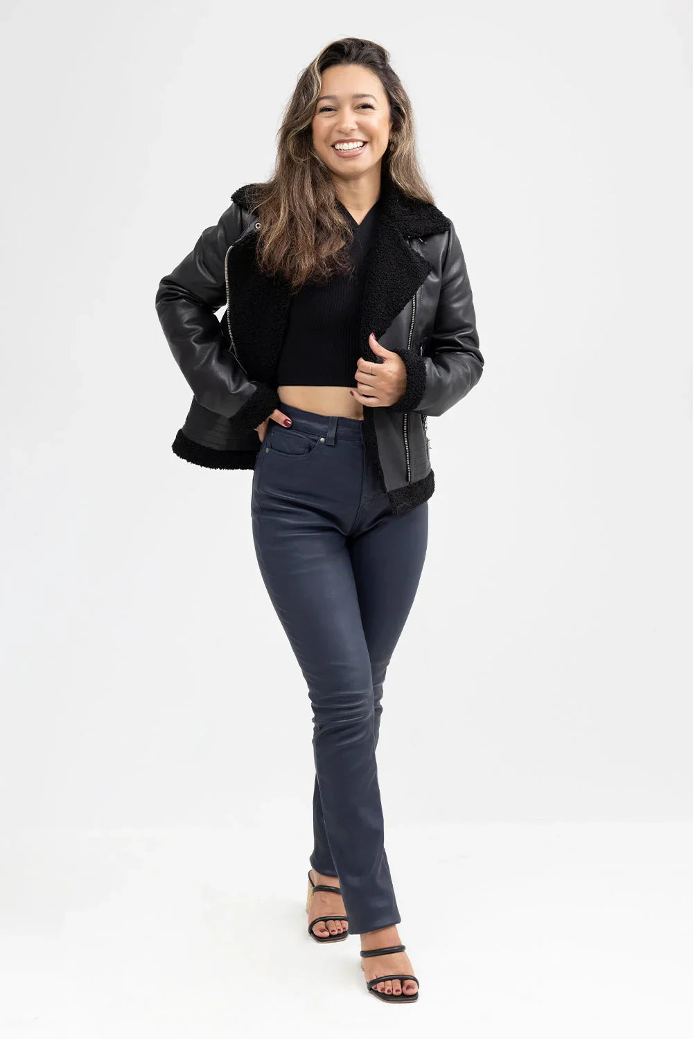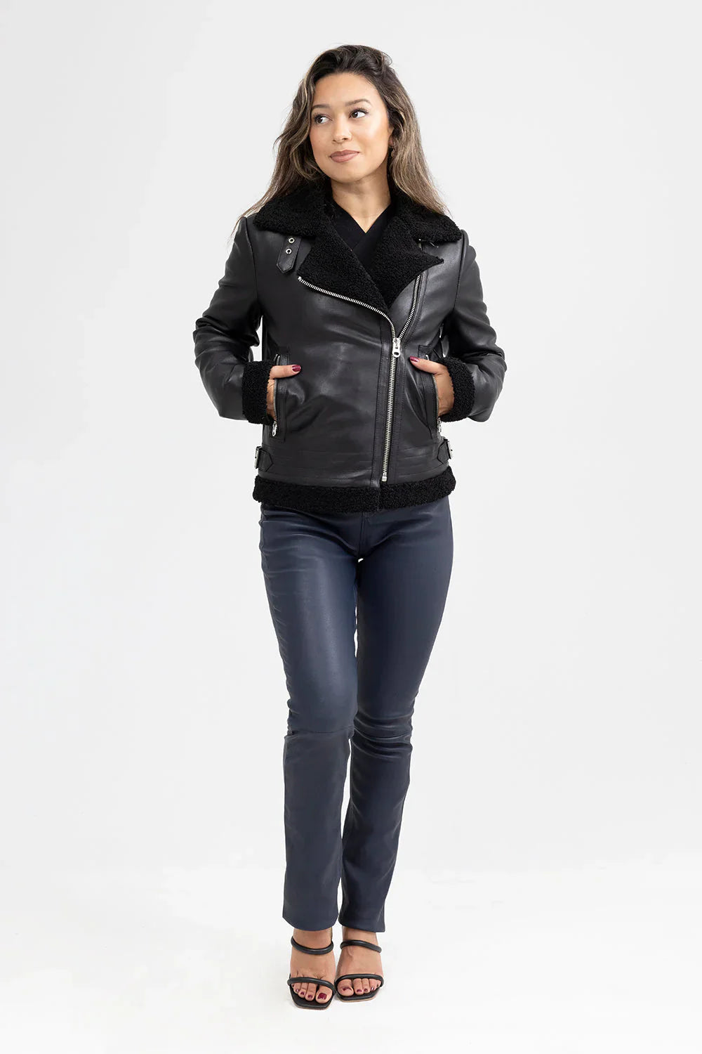 Channel the rhythm of the city with the MetroMuse Women’s Leather Jacket —a refined essential for the modern woman on the move. Made from premium lambskin leather, this jacket features a clean, structured silhouette with subtle detailing that nods to metropolitan sophistication. Its minimalist design is elevated by a sculpted fit, polished hardware, and a versatile length that layers effortlessly from office to after-hours.