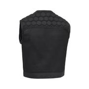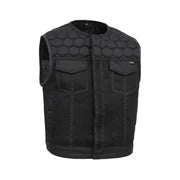 Our best selling club vest is now built for summer. Stay cool and protected with our new Moto Mesh series of vests. The Lowside runs 3 inches shorter than a standard vest, so it won't stack up around your waist or lift at the shoulders while you're riding. It also runs a half size smaller in the chest than other vests like the No Rival or Highside. This Lowside vest features a custom Hornet stitch on the cordura shoulder, our standard conceal carry pockets, Moto Mesh body, mesh lining, mesh conceal pockets for air flow, and a rolled collar.