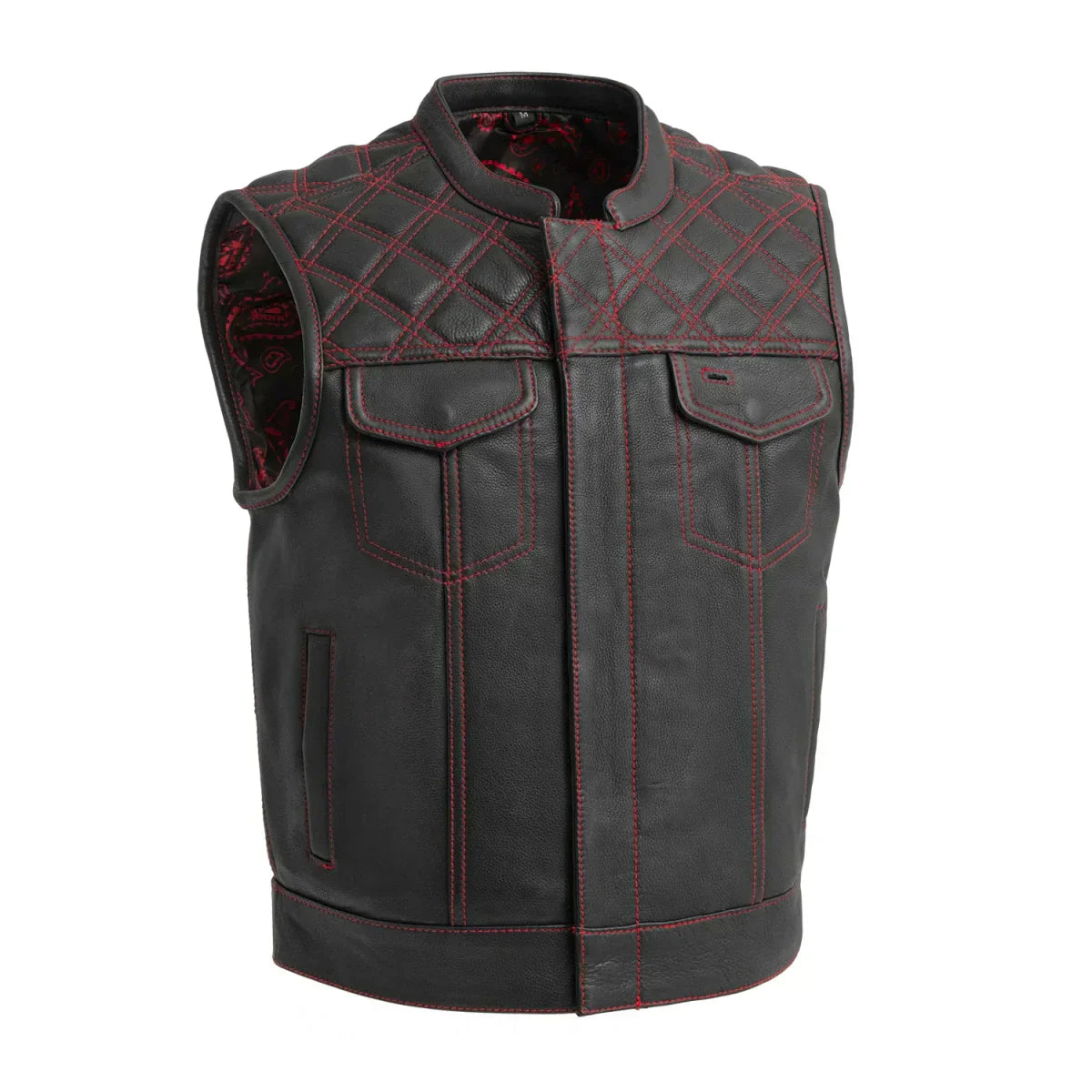 This vest blends premium craftsmanship, rugged durability, and urban sophistication, making it the perfect addition to any rider’s wardrobe. Features: 0.9 - 1.0 mm soft Milled Cowhide Club style vest...