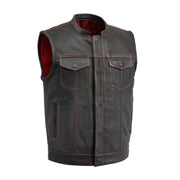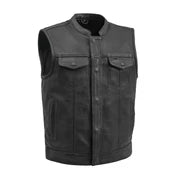 Description FIM689PERF | Sharp Shooter Perforated Men's Motorcycle Leather Vest Our best selling club vest is now built for summer. Stay cool and protected with perforated Diamond Naked Cowhide leather. The...