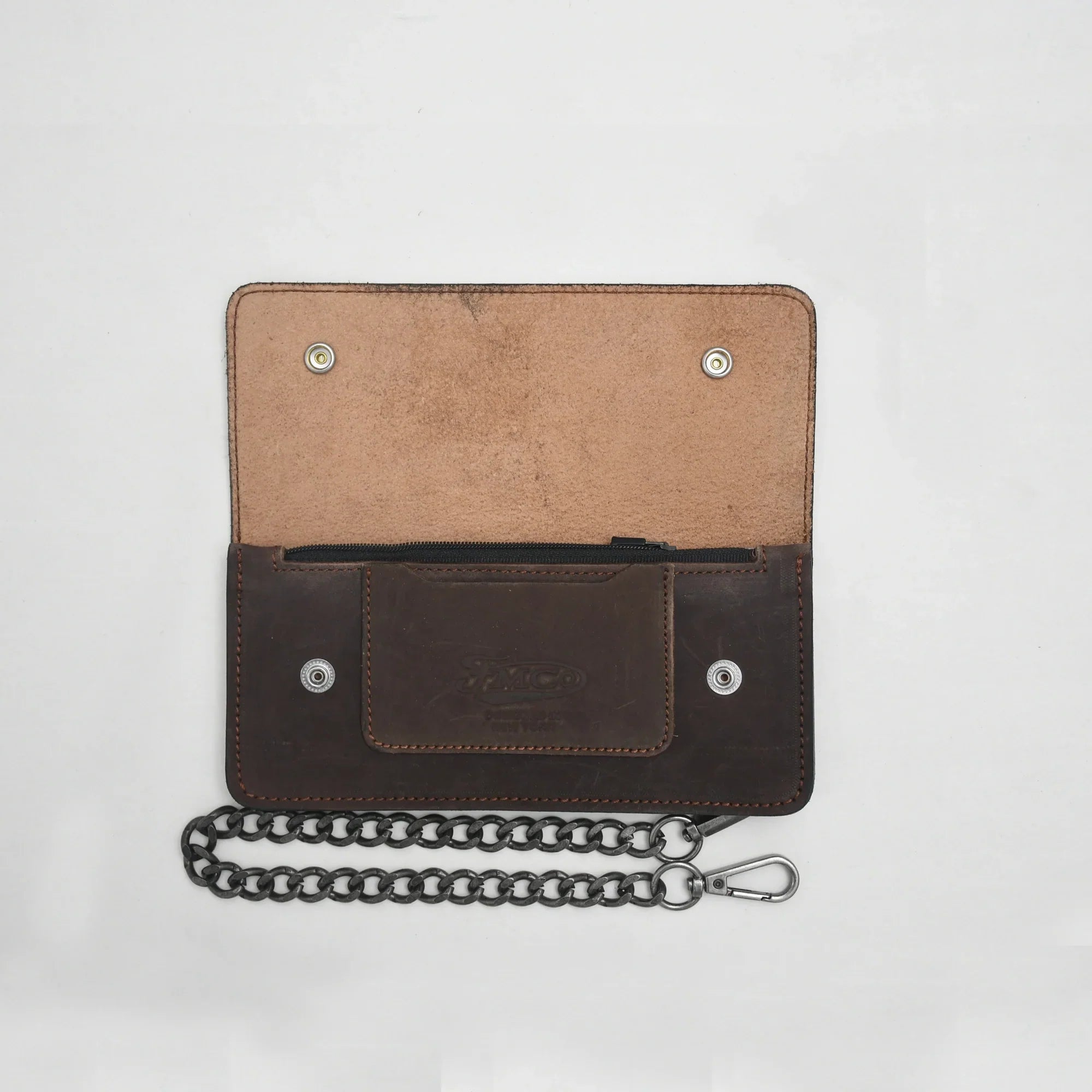 With its heavy-duty metal chain and leather loop attachment, the Small Trucker Wallet is an excellent option for bikers, travelers, and busy individuals. Its generous interior holds cash, cards, and small items, providing both fashion and functionality. Whether you’re looking for ladies leather wallets or leather wallets for gents, the versatility that comes with this size means it’s the perfect gift for both.