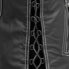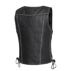 •  Sleek and Functional Fit: This leather vest has a slim but relaxed cut that hugs the female form for a flattering shape without limiting movement.