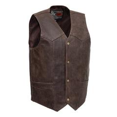 SKU: FIM643CAN-BRN-S Key Features: 1.1-1.2mm Drum Dyed Naked Cowhide Western style with V-neck Classic four snap front Two horizontal pockets Two conceal carry pockets with bullet snaps and tapered holsters Interior...