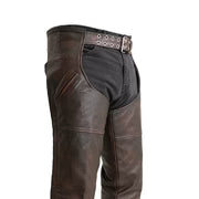 Description FIM837CV | Dakota - Unisex Motorcycle Leather Chaps Looking for something a little different? The Dakota chaps feature our dark copper colored Naked Cowhide, with two zippered pockets. You'll...