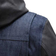 SKU: FIL167DM-BLU-XS Key Features: Premium black denim core with genuine leather sleeves Quilted stitch accents on shoulders and upper arms Stand collar with snap closure and moto-inspired zip front Breathable lining...