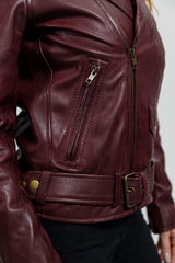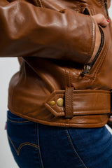 SKU: WBL1390-WHSKY-XS Key Features: Made from 100% premium full-grain leather for lasting durability and luxe feel Tailored fit with flattering seams and waist contouring Asymmetrical front zipper and snap lapel for...