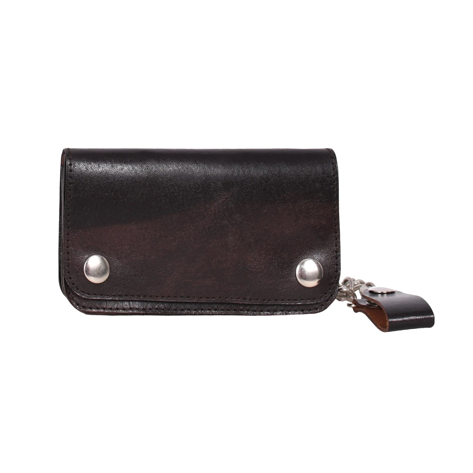 The Small Trucker Wallet is a handcrafted leather wallet made from highest-quality full-grain cowhide leather. This small leather wallet has a black-leaning brown finish that will become a wardrobe staple. The stainless steel snap buttons on this handmade wallet keep everything securely tucked in, meaning your valuables are not at risk of slipping out.