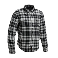 SKU: FIM413CNVS-BLKWH-S Key Features: Heavyweight cotton flannel body for warmth and comfort Reinforced canvas shoulders and elbows for added durability Snap-down collar and button front for classic moto styling Dual chest pockets and hidden...